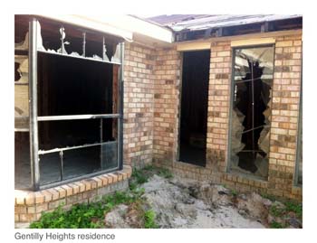 The first set of pictures show the destruction, the second set are the work crew and their work, the third set is the dedication, and the final set shows some of the villages provided by Project Homecoming which managed the project.